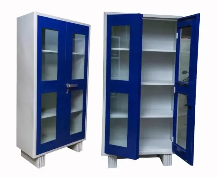 SIZE : HEIGHT:70 ''?DEPTH:16 ''?BREATH:34''? CR SHEET METAL 0.55 MM THICKNESS POWDER COATING PAINT SIMPLE LOCK COATED METAL HANDLE 4 CABINET 15'' SELF SIZE OUT SIDE OPEN DOOR LEG SUPPORT CABINET GLASS 3.5MM GROSS WEIGHT :70KG