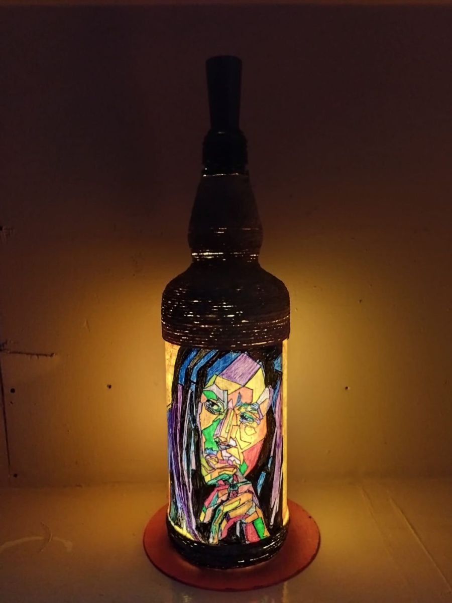 Handmade Bottle Craft With Light - Bob Marley - Unique Gift Item